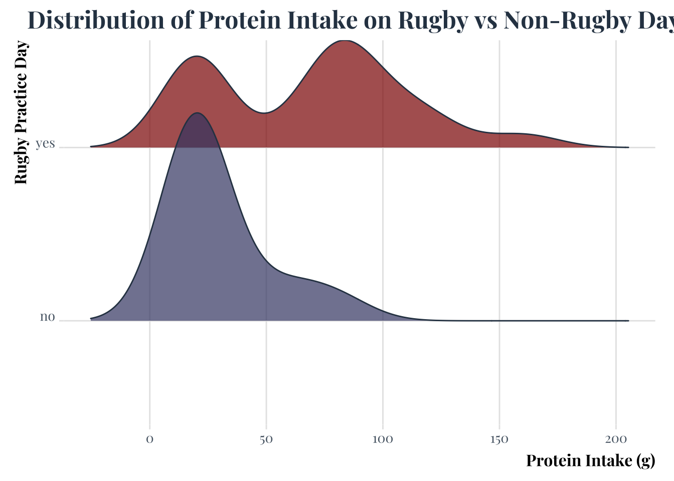 title = "Distribution of Protein Intake on Rugby vs Non-Rugby Days"